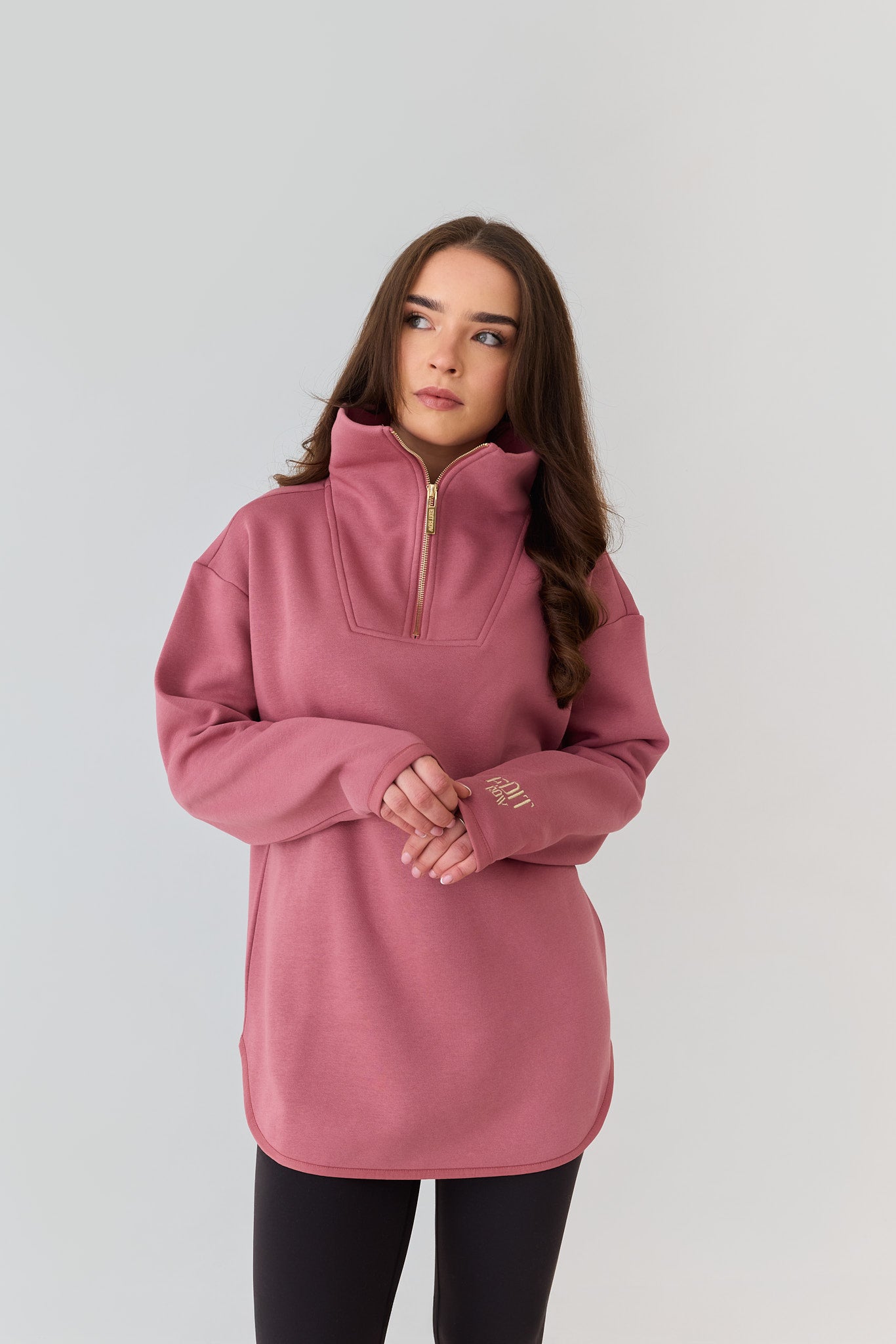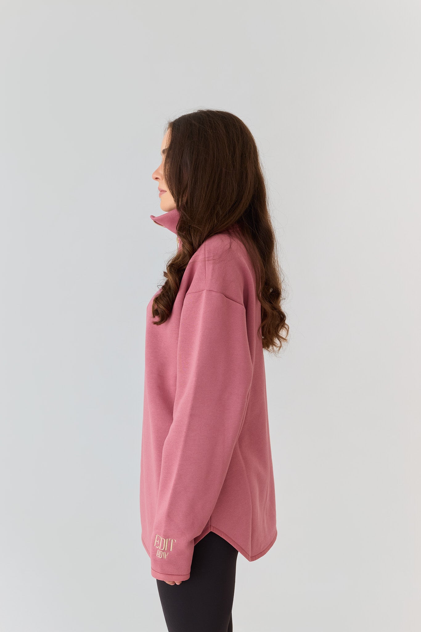 The Elle Funnel Neck reimagines relaxed refinement with its ultra-soft cotton construction, offering cloud-like comfort and timeless design. Anchored by a branded gold zip that glides smoothly along the front, the half-zip fastening allows for adjustable styling, while the high collar funnel neck adds a sleek, modern edge.